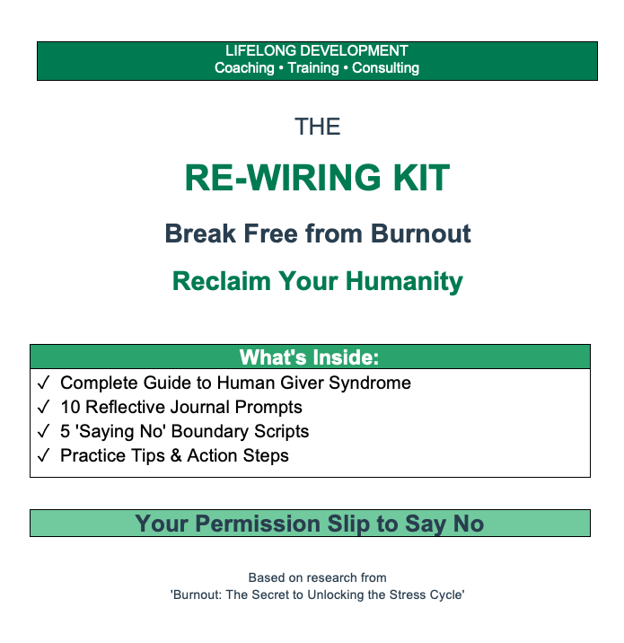 Based on the groundbreaking book Burnout: The Secret to Unlocking the Stress Cycle, this Re-Wiring Kit gives you the tools to identify where you're trapped, reclaim your humanity, and start saying "no" without guilt.